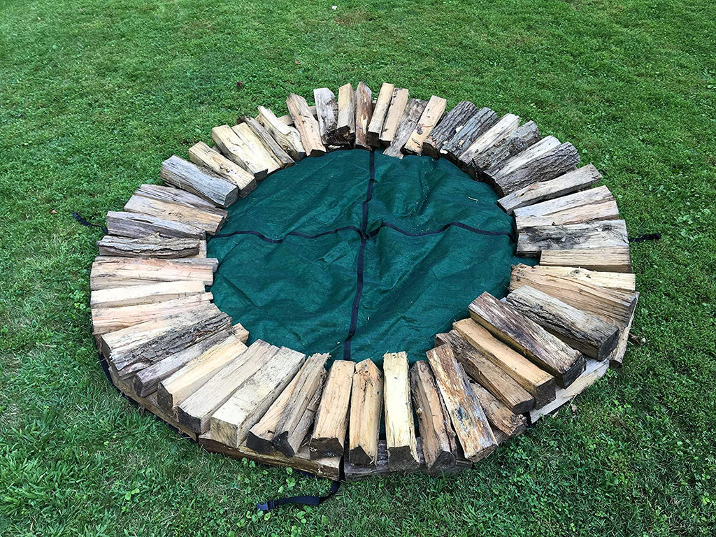 Størrelsen på det kraftige topptrekket er 245cm i diameter og rommer ca. 7 paller (7 kubikkmeter) med ved hvis du stabler den 140cm høy. Grafikken på siden av tømmerdekselet viser hvor mye ved som er i haugen basert på høyden.